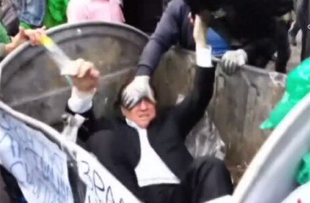 Politico arrojado a un basurero, en Kiev