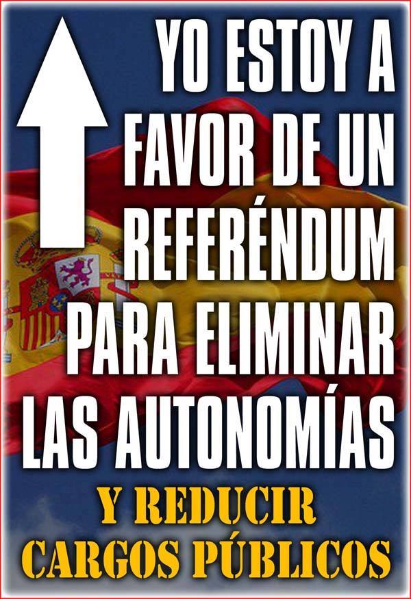 Antes de que los secesionistas catalanes convoquen su referéndum ilegal y provoquen una intervención del Ejercito en defensa de la unidad nacional, como es su deber, el gobierno, con el apoyo de sus aliados, debería convocar un referéndum de alcance nacional, en el que se le pregunte a los ciudadanos si quieren mantener las competencias e instituciones de los gobiernos autonómicos como están o desean reducirlas.